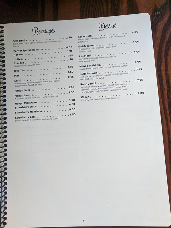 Namaste India Grill, Menu, Beverages, Dessert Published July 5, 2021, 20:17 at 600 × 800 in Pandemic Takeout 63: Namaste India Grill (Arden Hills, MN) ← Previous Next →