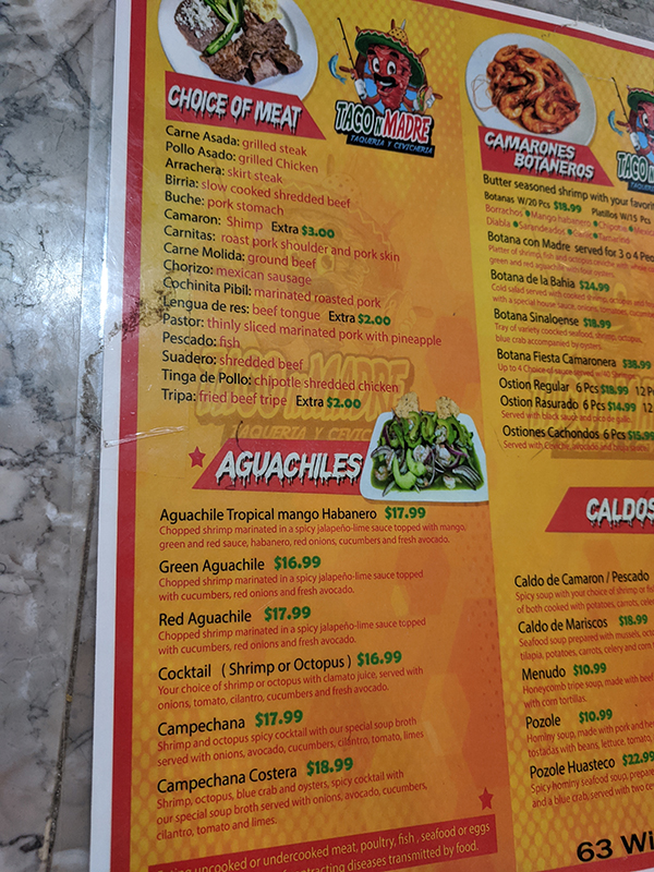 Taco N Madre, Menu, Choice of Meat, Aguachiles Published August 16, 2021, 19:58 at 600 × 800 in Taco N Madre (St. Paul, MN) ← Previous Next →