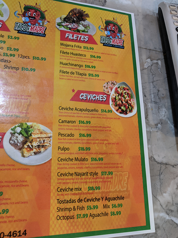 Taco N Madre, Menu, Filetes, Ceviches Published August 16, 2021, 19:58 at 600 × 800 in Taco N Madre (St. Paul, MN) ← Previous Next →