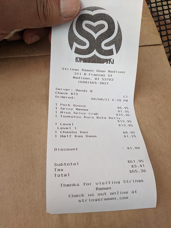 Strings Ramen, Check Published August 27, 2021, 21:50 at 600 × 800 in Strings Ramen (Madison, Wisconsin) ← Previous Next →