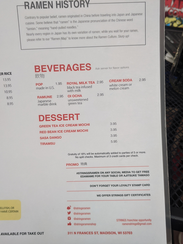 Strings Ramen, Menu, Beverages, Dessert Published August 27, 2021, 21:51 at 600 × 800 in Strings Ramen (Madison, Wisconsin) ← Previous Next →