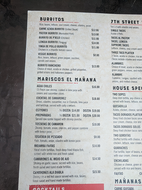 Mañana, Menu, Burritos, Mariscos el Mañana Published September 13, 2021, 10:44 at 600 × 800 in Mañana (St. Paul, MN) ← Previous Next →
