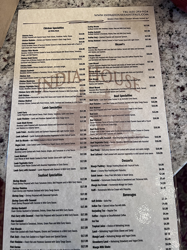 India House, Menu, Second Side Published November 15, 2021, 9:31 at 600 × 800 in Pandemic Takeout 70: India House (St. Paul, MN) ← Previous Next →