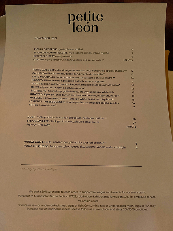 Petite Leon, Menu Published December 6, 2021, 20:03 at 600 × 800 in Petite Leon (Minneapolis) ← Previous Next →