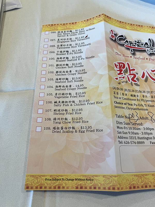 Capital Seafood, Noodles and Fried rice Published December 24, 2021, 22:26 at 600 × 800 in Dim Sum at Capital Seafood (Los Angeles, December 2021) ← Previous Next →