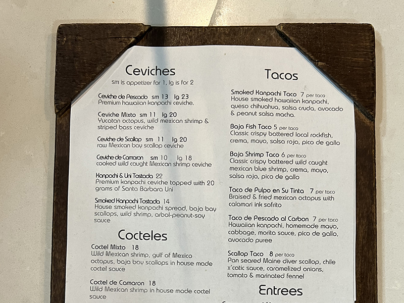 Holbox 2, Menu, Ceviches, Cocteles, Tacos Published December 22, 2021, 11:48 at 800 × 600 in Holbox, Again (Los Angeles, Dec 2021) ← Previous Next →