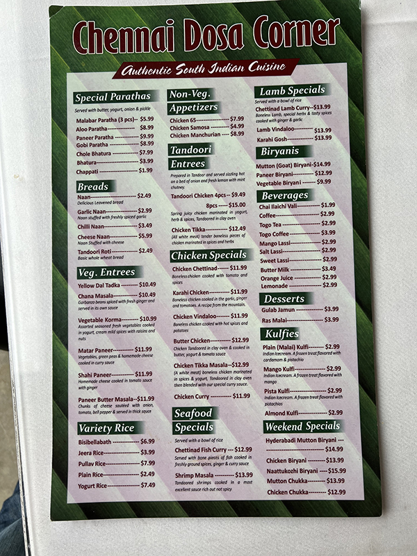 Chennai Dosa Corner, Menu, Other Dishes Published January 15, 2022, 21:40 at 600 × 800 in Chennai Dosa Corner (Los Angeles, December 2021) ← Previous Next →