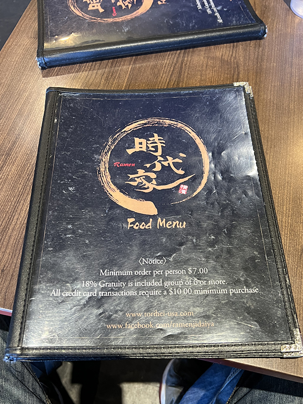 Jidaiya, Menu Published January 22, 2022, 18:23 at 600 × 800 in Jidaiya Ramen (Los Angeles, December 2021) ← Previous Next →