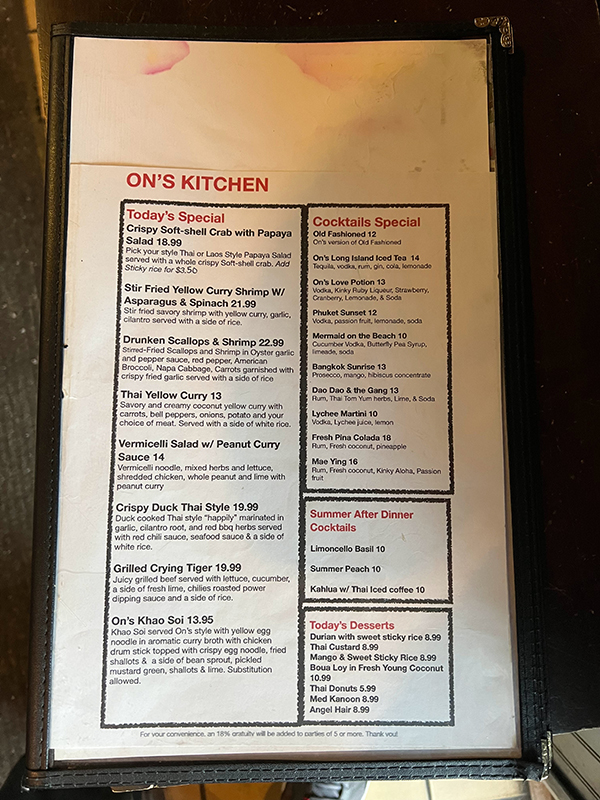 On’s Kitchen, Menu, Specials, Drinks Published February 7, 2022, 9:52 at 600 × 800 in Pandemic Takeout 74: On’s Kitchen in the New Year ← Previous Next →