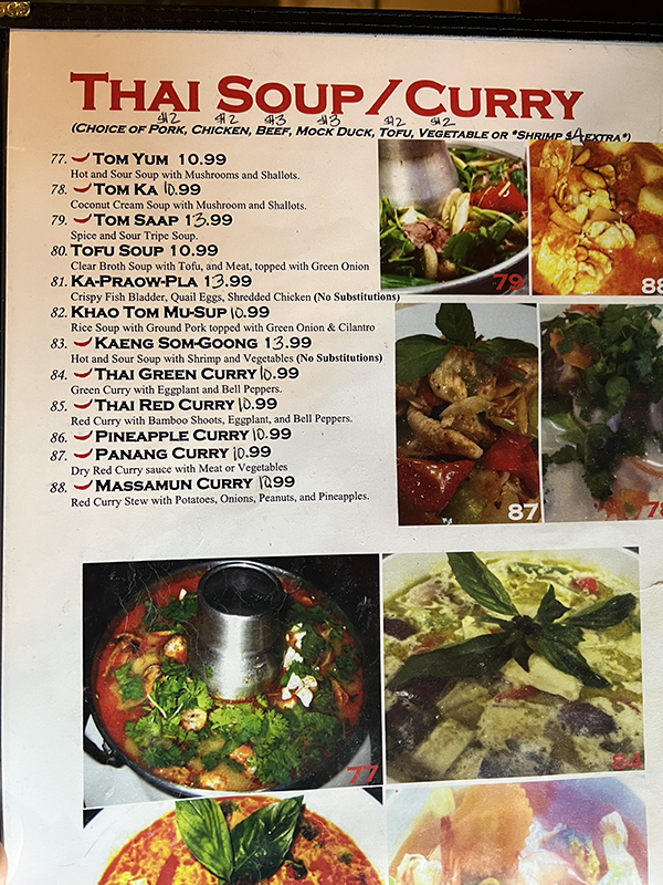 On’s Kitchen, Menu, Thai Soup:Curry Published February 7, 2022, 9:55 at 600 × 800 in Pandemic Takeout 74: On’s Kitchen in the New Year ← Previous Next →