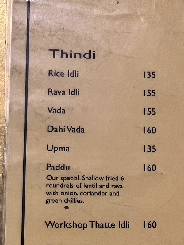 Carnatic Cafe, Menu, Thindi Published March 28, 2022, 18:38 at 600 × 800 in Carnatic Cafe II, Eight Years Later (Delhi, March 2022) ← Previous Next →
