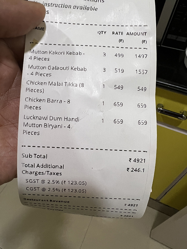 Al Kauser, Bill Published April 9, 2022, 22:00 at 600 × 800 in Biryani and Kababs (Delhi, March 2022) ← Previous Next →