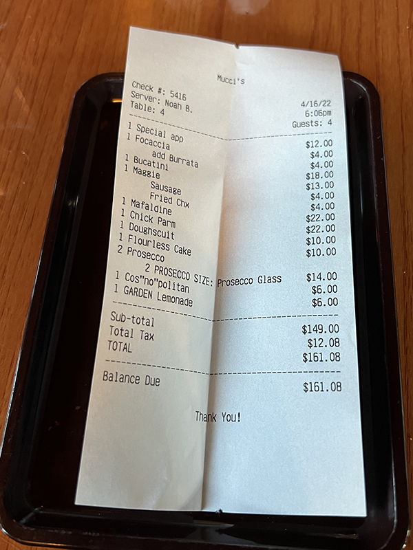 Mucci’s Italian, Check Published April 18, 2022, 19:58 at 600 × 800 in Mucci’s Italian (St. Paul, MN) ← Previous Next →