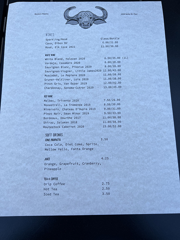 Kalsada, Menu, Wine, Drinks Published July 14, 2022, 18:41 at 600 × 800 in Kalsada (Saint Paul, MN) ← Previous Next →