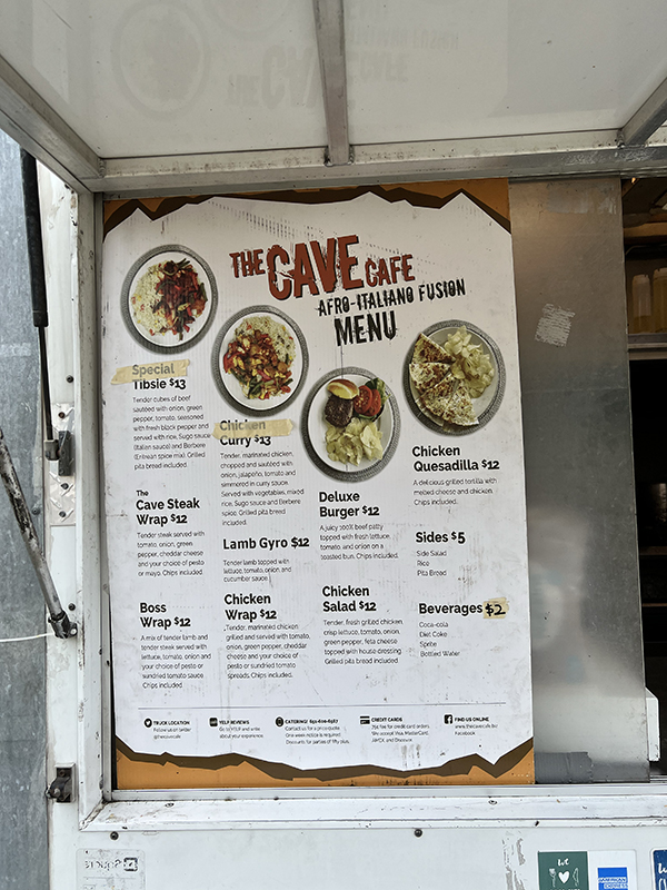 Little Africa Festival 2022, The Cave Cafe menu Published August 13, 2022, 22:40 at 600 × 800 in Scenes from the Little Africa Festival, 2022 (St. Paul, MN) ← Previous Next →