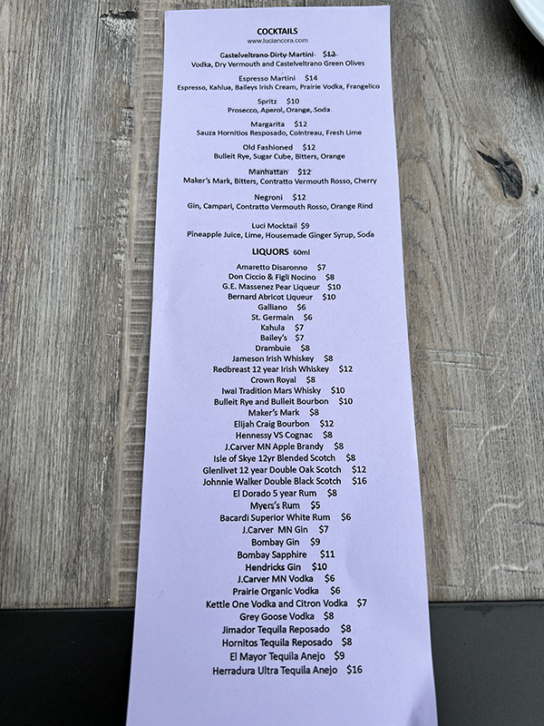 Luci Ancora, Menu, Cocktails and Liquors Published August 15, 2022, 19:57 at 600 × 800 in Luci Ancora (St. Paul, MN) ← Previous Next →