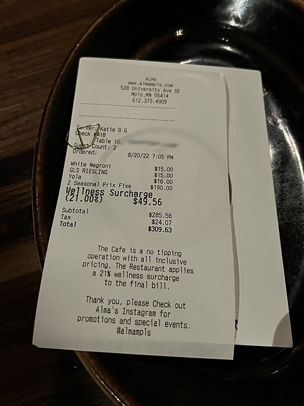 Alma, August 2022, Check Published August 22, 2022, 21:21 at 600 × 800 in Restaurant Alma V, Summer 2022 (Minneapolis) ← Previous Next →