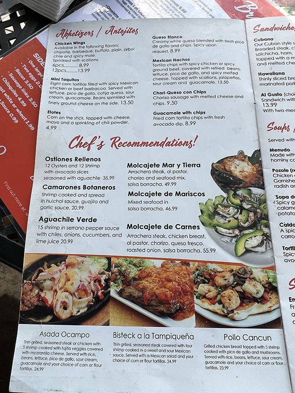 Los Ocampo, Menu, Appetizers, Chef’s Recommendations Published September 12, 2022, 20:57 at 600 × 800 in Los Ocampo Restaurant and Bar, Suburban Ave. (St. Paul, MN) ← Previous Next →