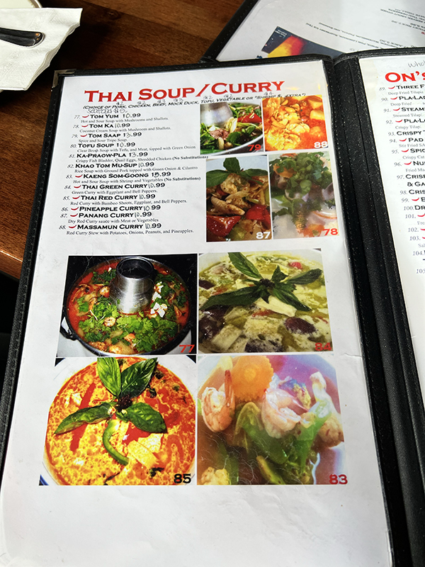 On’s Kitchen, Menu, Thai Soup:Curry Published October 3, 2022, 18:52 at 600 × 800 in On’s Kitchen VIII (St. Paul, MN) ← Previous Next →
