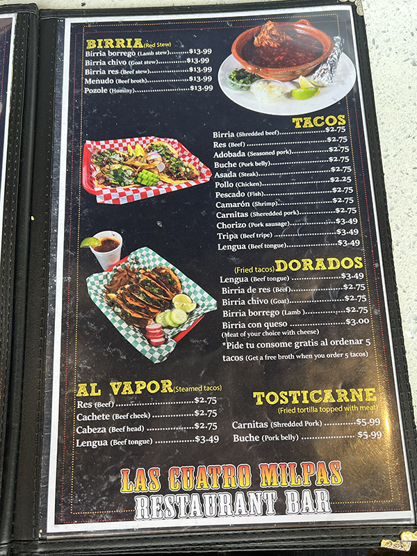 Las Cuatro Milpas, Bloomington, Menu, Birria, Tacos, Tosticarne Published November 21, 2022, 21:57 at 600 × 800 in Las Cuatro Milpas (Bloomington, MN) ← Previous Next →