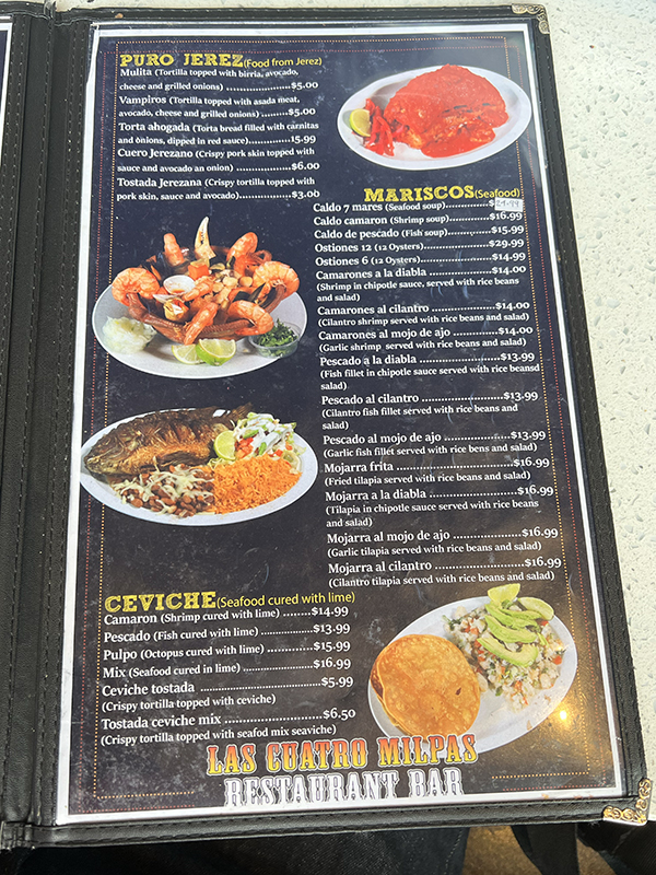 Las Cuatro Milpas, Bloomington, Menu, Puro Jerez, Mariscos, Ceviche Published November 21, 2022, 21:58 at 600 × 800 in Las Cuatro Milpas (Bloomington, MN) ← Previous Next →