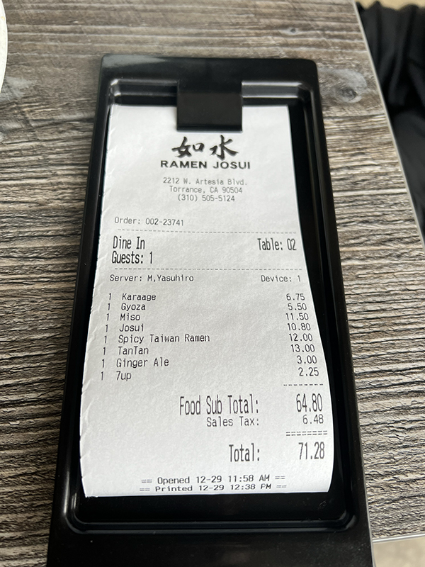 Josui Ramen, Check Published February 7, 2023, 21:50 at 600 × 800 in Josui Ramen (Torrance, CA, December 2022) Next →