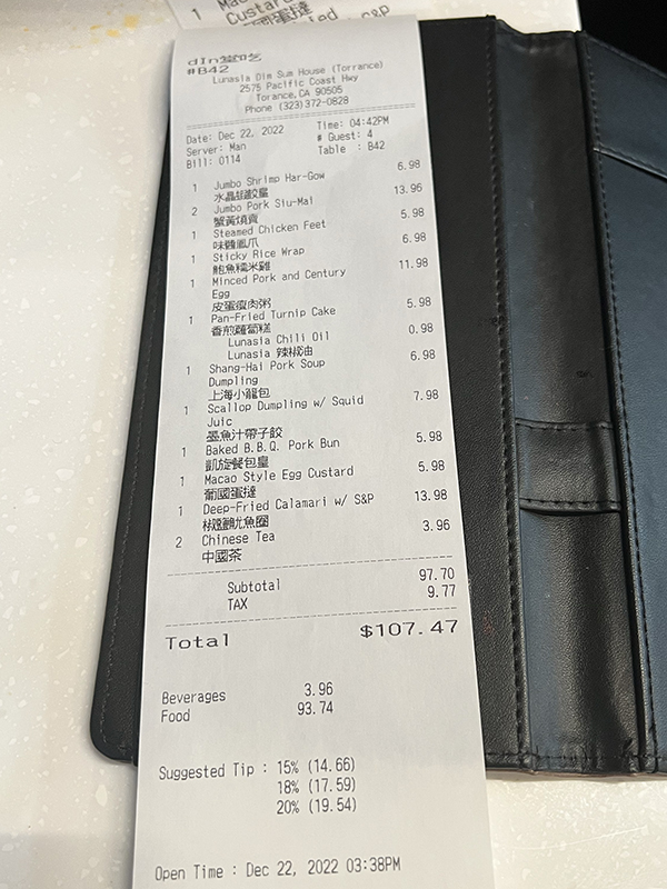 Lunasia, Torrance, Check Published February 11, 2023, 23:06 at 600 × 800 in Dim Sum at Lunasia, South Bay (Torrance, CA, December 2022) ← Previous Next →