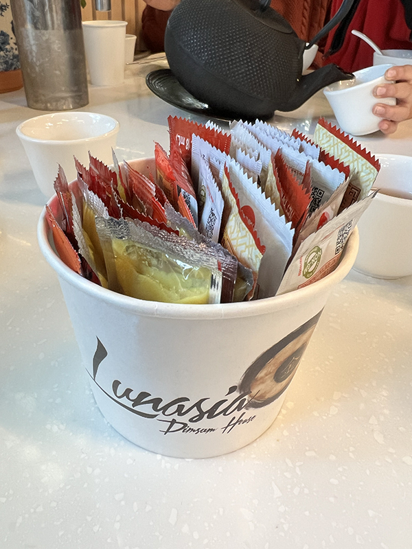 Lunasia, Torrance, Sauces Published February 11, 2023, 23:07 at 600 × 800 in Dim Sum at Lunasia, South Bay (Torrance, CA, December 2022) ← Previous Next →