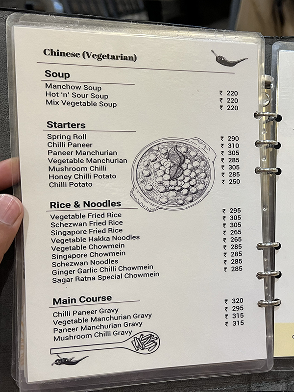 Sagar Ratna, Menu, Chinese Published February 16, 2023, 8:43 at 600 × 800 in Sagar Ratna, One Horizon Center (Gurgaon, January 2023) ← Previous Next →