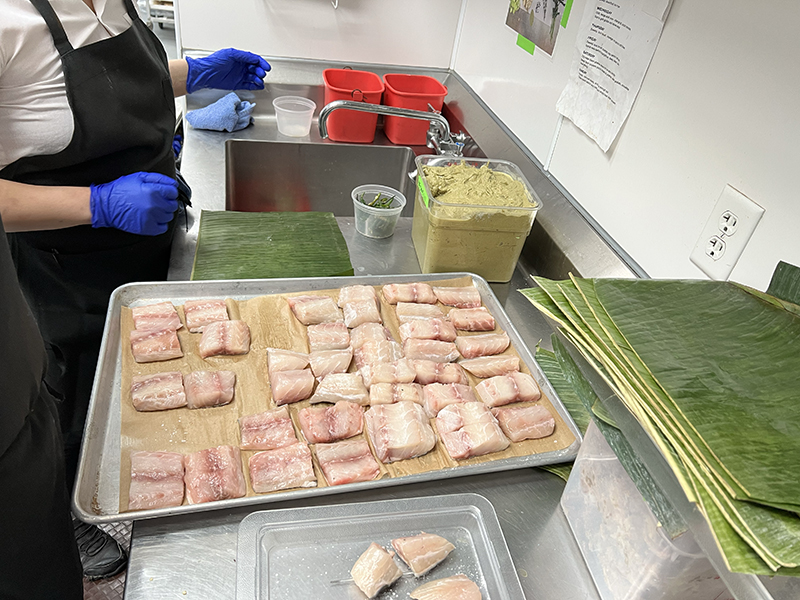 India’s Gandhi Tandoori Bollywood Mahal, Getting ready to wrap the fish Published March 3, 2023, 9:26 at 800 × 600 in India’s Gandhi Tandoori Bollywood Mahal (Minneapolis; One Night Only) ← Previous Next →