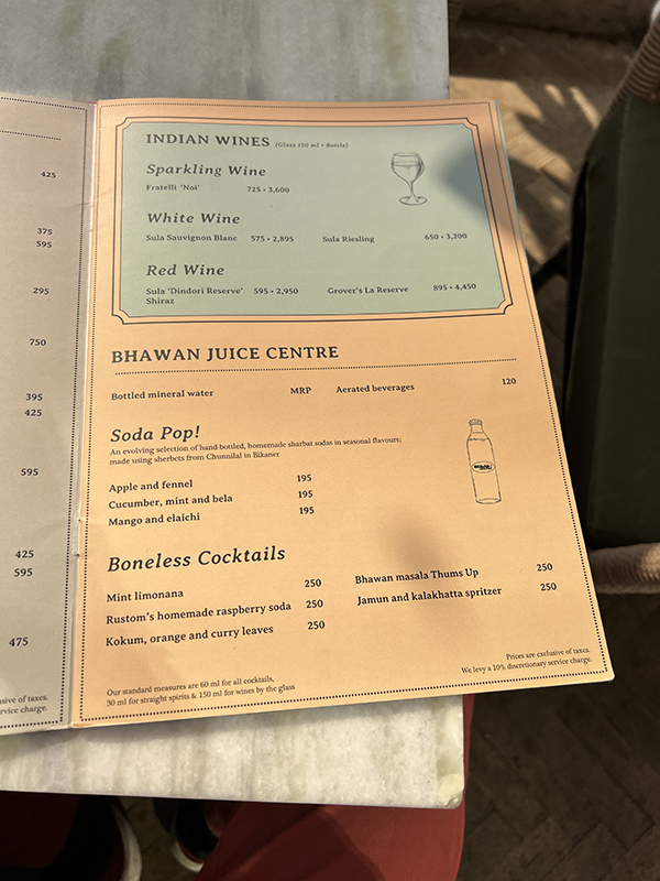 Bhawan, Menu, Wines, Juices, Mocktails Published March 3, 2023, 10:10 at 600 × 800 in Bhawan (Gurgaon, January 2023) ← Previous Next →