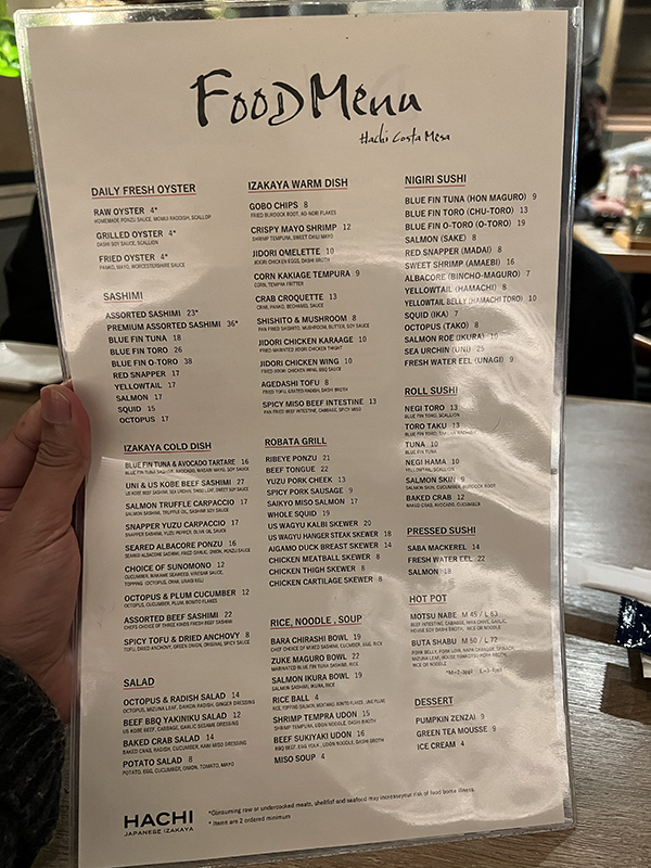 Hachi, Costa Mesa, Food Menu Published March 9, 2023, 19:38 at 600 × 800 in Izakaya Hachi (Costa Mesa, Ca, December 2022) ← Previous Next →