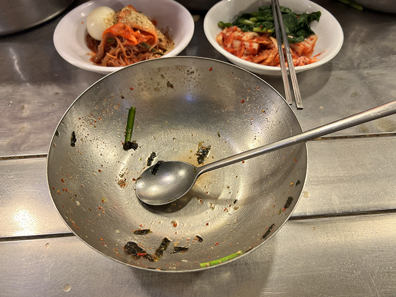 Kalguksu Alley, Nothing left behind Published March 18, 2023, 9:19 at 800 × 600 in Lunch at the Kalguksu Alley in Namdaemun Market (Seoul, March 2023) ← Previous Next →