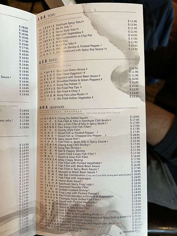 Grand Szechuan, March 2023, Menu, Tofu, Vegetables, Seafood Published March 28, 2023, 12:43 at 600 × 800 in A Grand Szechuan Check-In (Bloomington, MN) ← Previous Next →