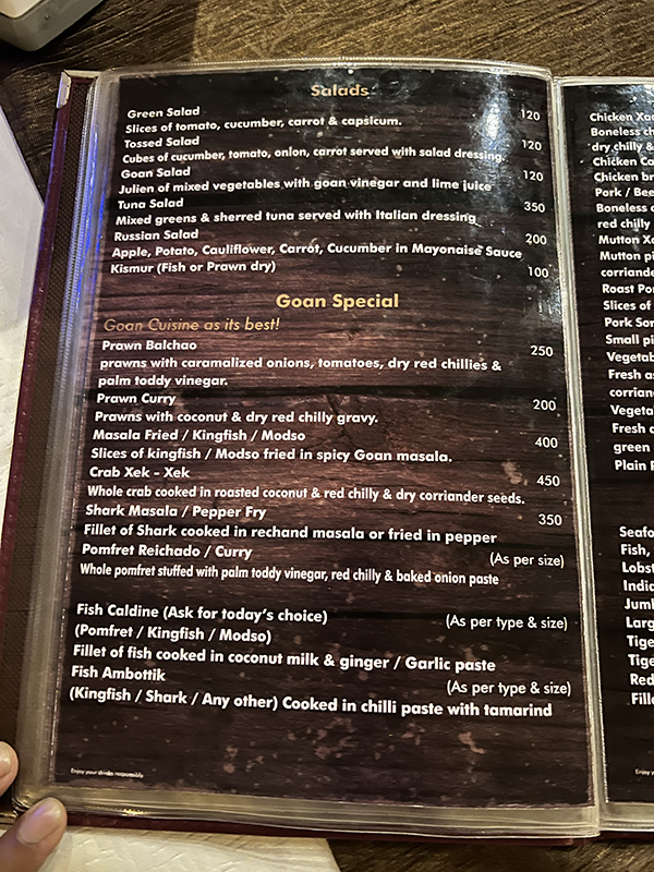 Joe’s River Cove, Menu, Salads, Goan Special Published April 15, 2023, 11:00 at 600 × 800 in Joe’s River Cove (Goa, January 2023) ← Previous Next →