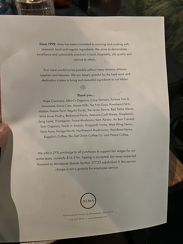 Alma, April 2023, Credits Published April 25, 2023, 9:34 at 600 × 800 in Restaurant Alma VII, Spring 2023 (Minneapolis) ← Previous Next →