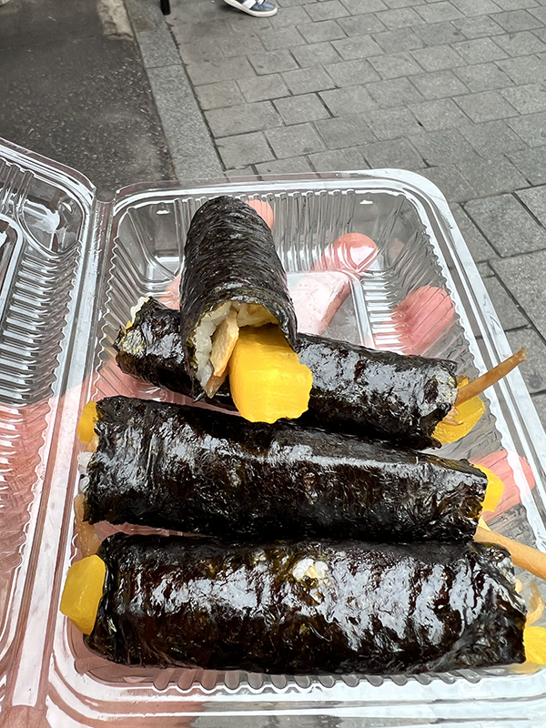 Namdaemun Market, Gimbap, side Published April 27, 2023, 7:50 at 600 × 800 in At Namdaemun Market, Pt. 2: Eating (Seoul, March 2023) ← Previous Next →