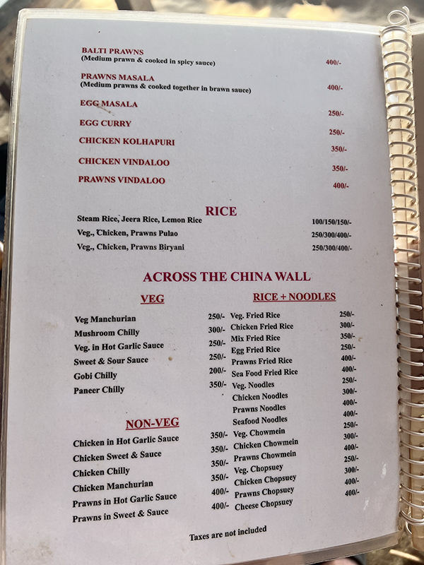 Blue Lagoon, Menu, Non-Veg, Rice, Across the China Wall Published May 6, 2023, 12:49 at 600 × 800 in Eating by the Water, Again (Goa, January 2023) ← Previous