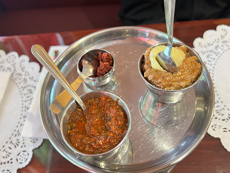 Kathiyawadi Kitchen, Chutneys, jaggery, ghee Published May 11, 2023, 11:38 at 800 × 600 in Kathiyawadi Kitchen (Sayreville, New Jersey) ← Previous Next →