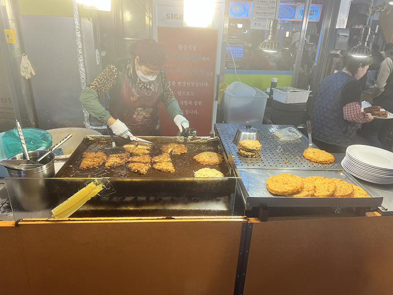Gwangjang Market, Bindaetteok being made Published May 20, 2023, 10:21 at 800 × 600 in At Gwangjang Market (Seoul, March 2023) ← Previous Next →