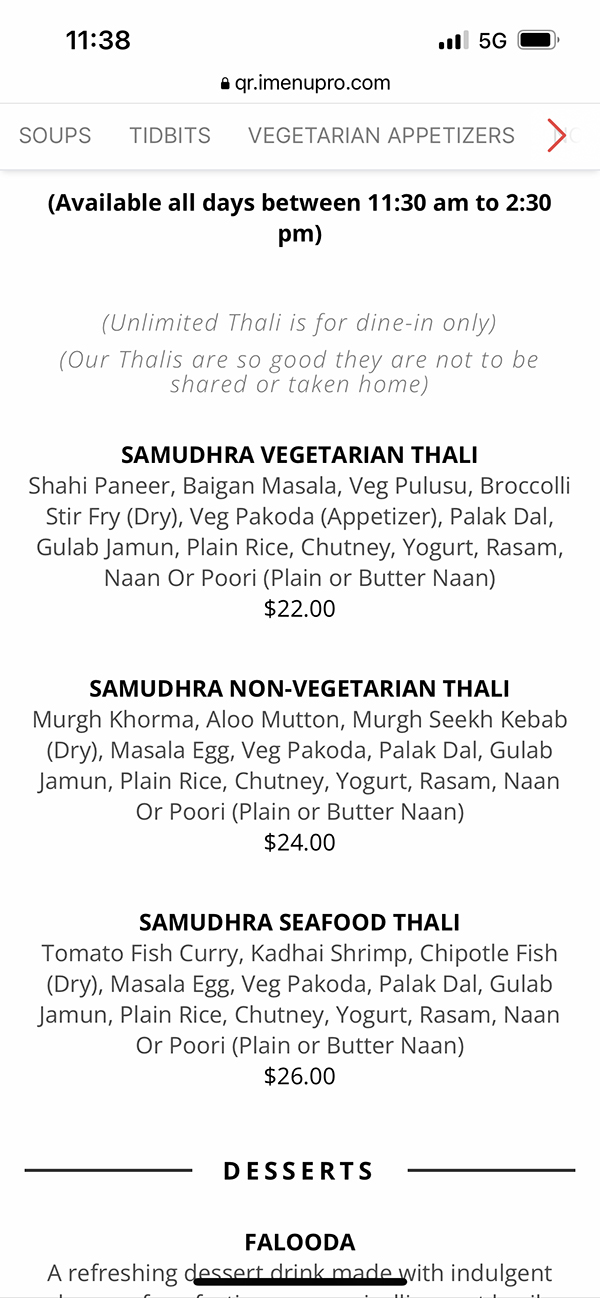 Samudhra, Thalis of the day, April 28 Published June 3, 2023, 10:18 at 600 × 1298 in Samudhra (Franklin Park, New Jersey) ← Previous Next →
