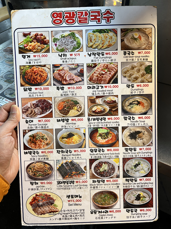 Eating at Gwangjang Market 1, Menu Published June 9, 2023, 10:27 at 600 × 800 in Eating at Gwangjang Market, Pt. 1 (Seoul, March 2023) ← Previous Next →