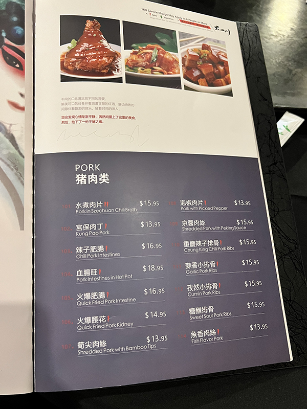 Grand Szechuan, Menu, Pork Published June 18, 2023, 20:39 at 600 × 800 in Grand Szechuan, June 2023 (Bloomington, MN) ← Previous Next →