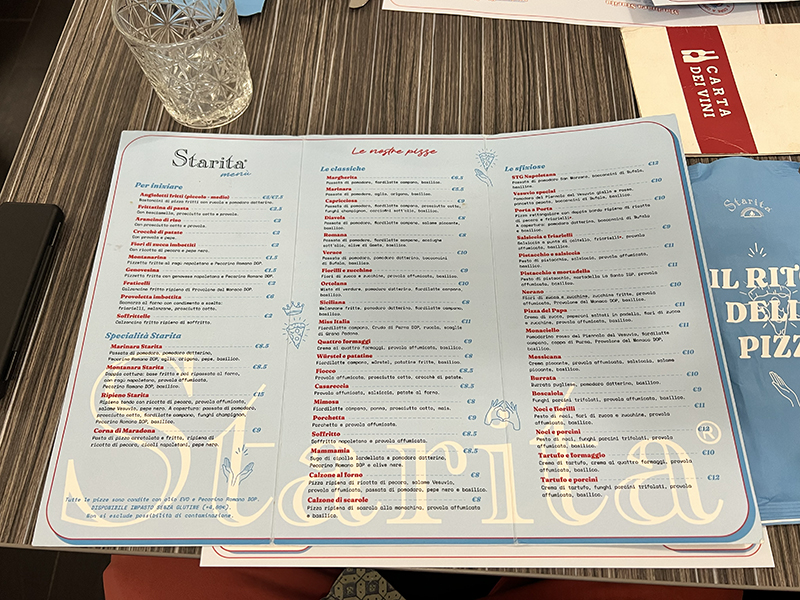Starita, Italian menu Published July 3, 2023, 15:10 at 800 × 600 in Starita (Naples, June 2023) ← Previous Next →