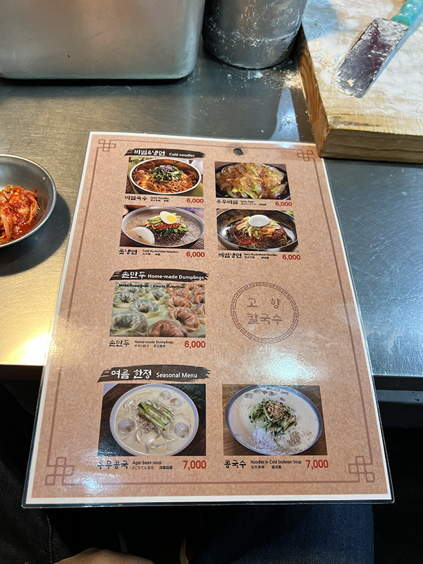 Gwangjang Market, Gohyang Kalguksu, Menu2 Published July 9, 2023, 4:06 at 600 × 800 in Eating at Gwangjang Market, Pt. 2 (Seoul, March 2023) ← Previous Next →