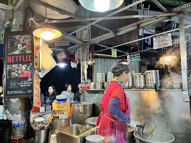 Gwangjang Market, Gohyang Kalguksu, Straining noodles Published July 9, 2023, 4:05 at 800 × 600 in Eating at Gwangjang Market, Pt. 2 (Seoul, March 2023) ← Previous Next →