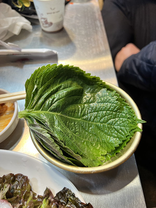 Gwangjang Market, Sookeneh, Perilla leaves Published July 9, 2023, 3:44 at 600 × 800 in Eating at Gwangjang Market, Pt. 2 (Seoul, March 2023) ← Previous Next →