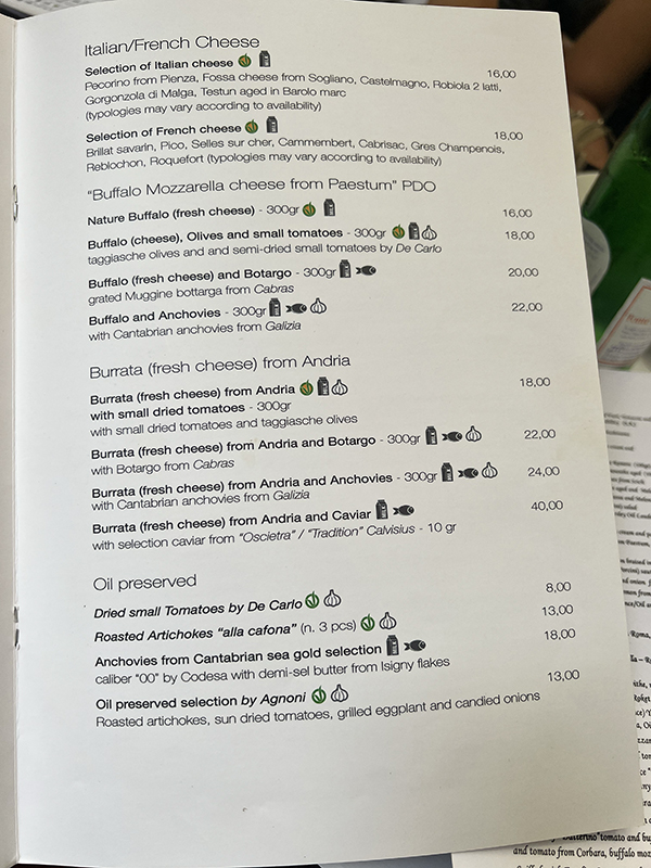 Emma, Menu, Cheese, Oil Preserved Published July 14, 2023, 12:17 at 600 × 800 in Emma (Rome, June 2023) ← Previous Next →