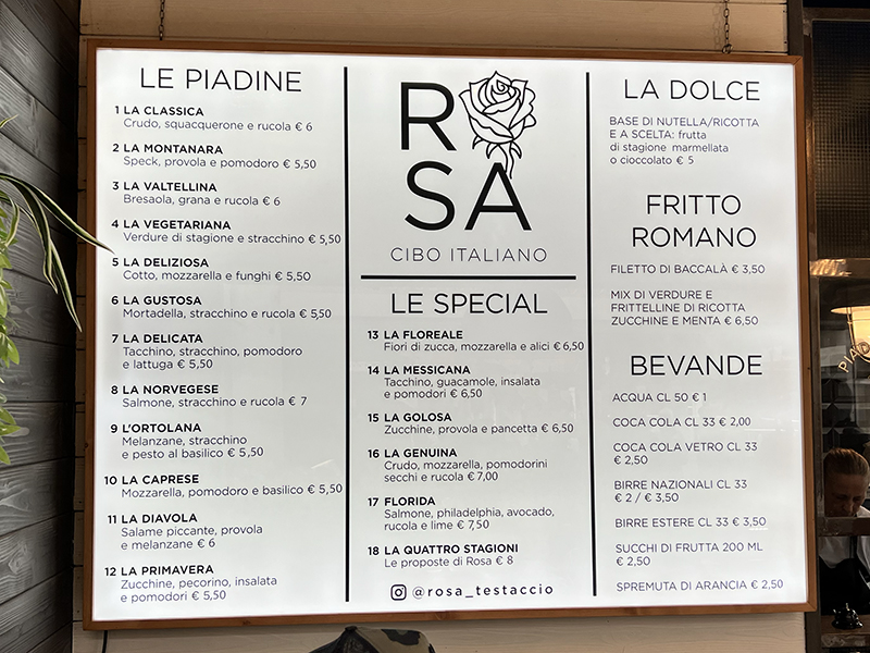 Mercato Testaccio, Rosa Cibo Italiano, Menu Published July 20, 2023, 17:24 at 800 × 600 in Mercato Testaccio (Rome, June 2023) ← Previous Next →