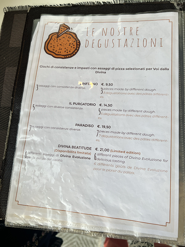 La Divina, Menu, Le Nostre Degustazioni Published August 24, 2023, 7:46 at 600 × 800 in La Divina Pizza (Florence, June 2023) ← Previous Next →